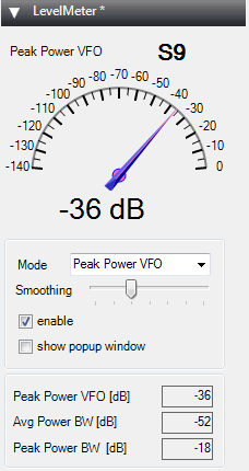 Take a look to the config file “SDRSharp.LevelMeter.xml” if you like to change the default settings (needs to restart SDR#)